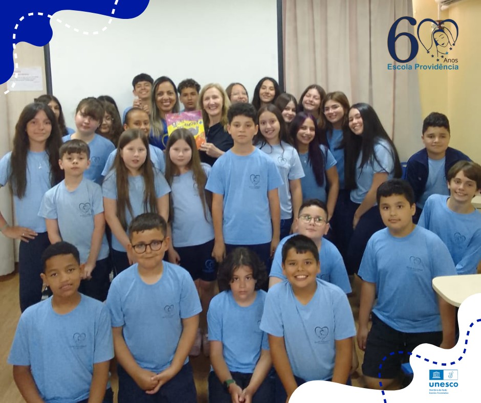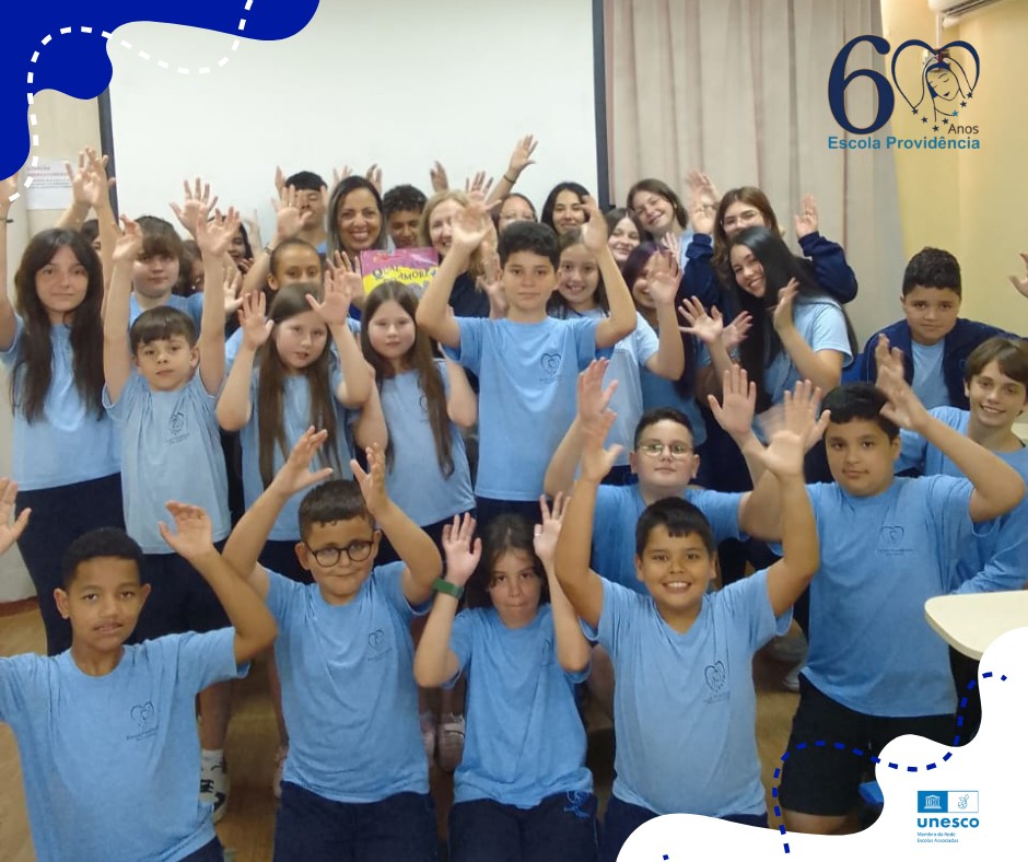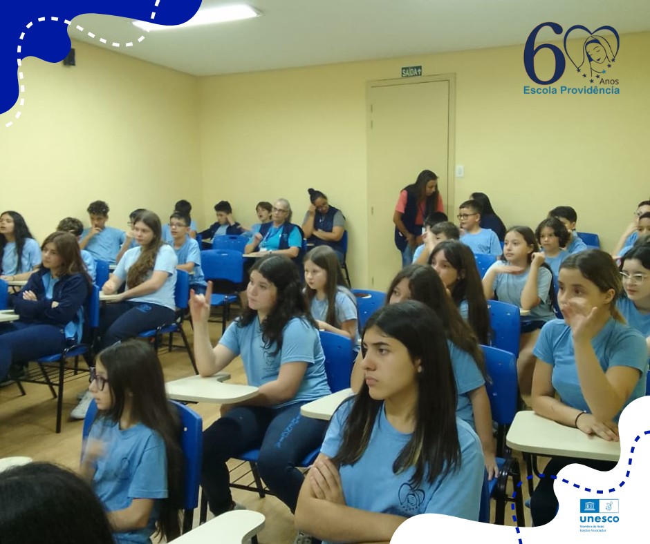Na abertura da semana literária de 2025 da Escola Nossa Senhora da Providência, os alunos do 6° ao 9° ano presenciaram nesta segunda-feira, uma mediação de história realizada pela Bibliotecária Carla Alfonso juntamente com a educadora Rosemeri Forgiarini, realizando a tradução da história na Língua Brasileira de Sinais - LIBRAS.